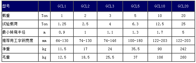GCL-1單軌小車(chē)技術(shù)參數(shù):